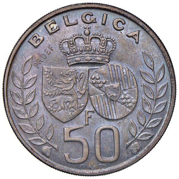 BELGIO Baudouin I (1951-1993) 50 Franchi 1960 Matrimonio PROVA - Rif.: Bogaert, 3072 (g. 12,45) R Legenda latina. PROEF al rovescio. Splendida patina di medagliere FDC