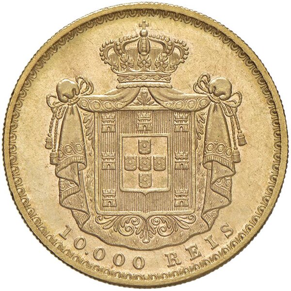 PORTOGALLO Luis I (1861-1889) 10.000 Reis 1883 - Fr. 152 AU (g 17,72) Bei fondi lucenti qFDC