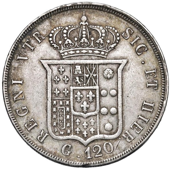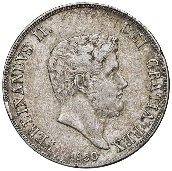 NAPOLI Ferdinando II (1830-1859) Piastra 1850 - Nomisma 957 AG (g 27,44) Colpo al bordo BB