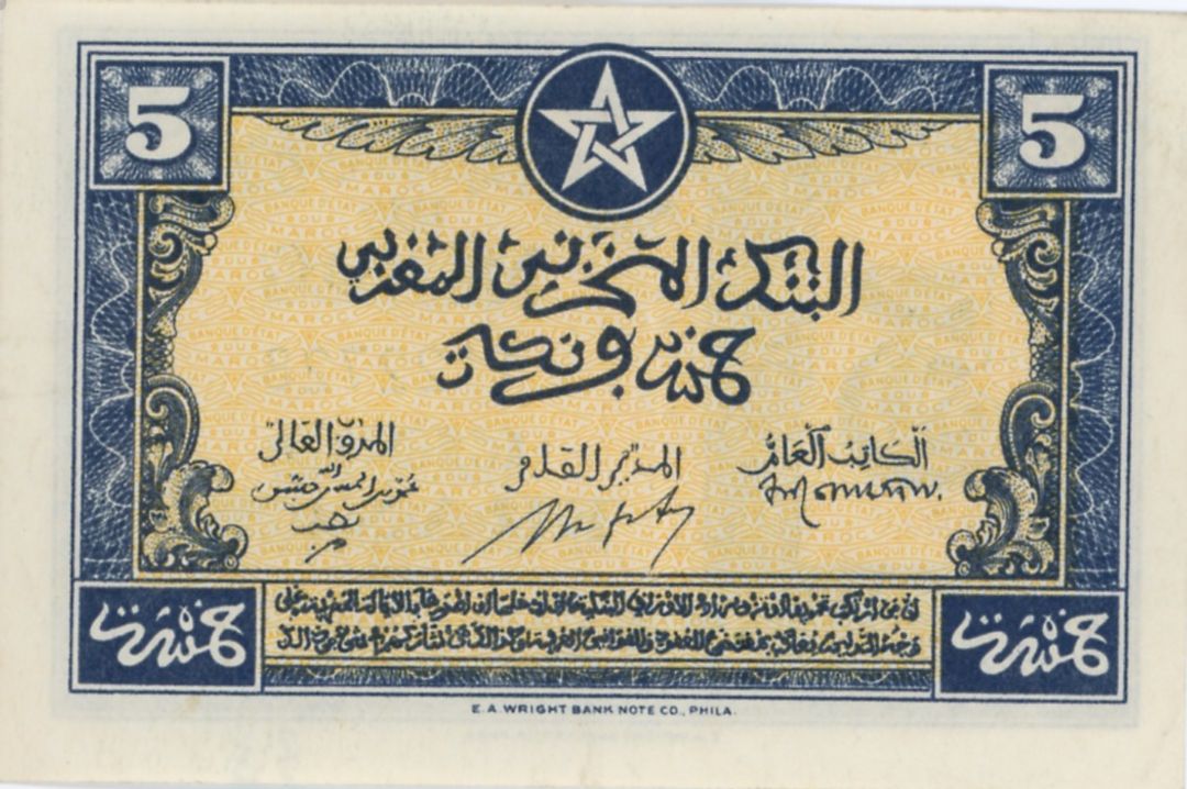 MAROCCO 5 Francs 01 08 1943 pick#24 BB/SPL