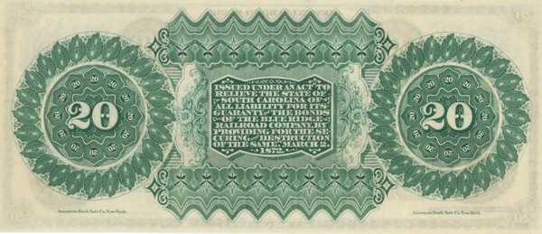 USA South Carolina 20 dollars 1872 pick #s3325 FDS