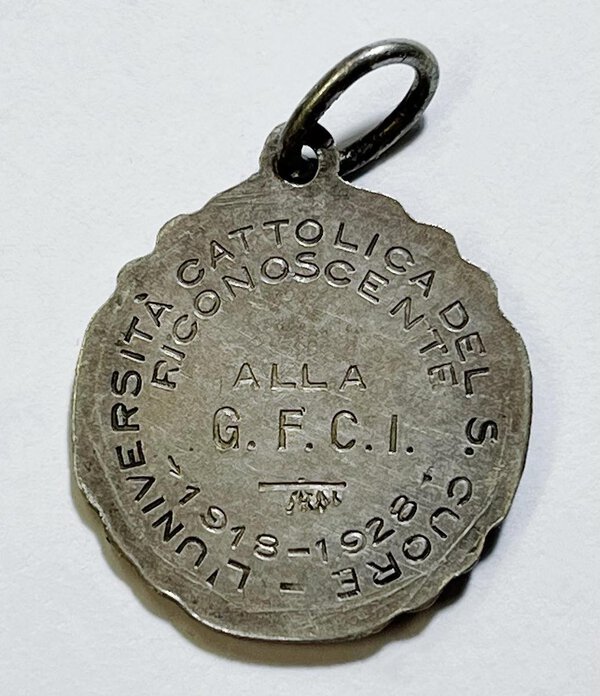 MEDAGLIA religiosa. Università del sacro cuore riconoscente alla G.F.C.L 1928 Ni; 20mm. BB