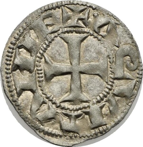 Alienor's coinage is anonymous and is known only from denier of this type and obols (Elias 12).