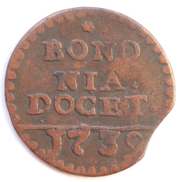 Bologna. Clemente XII. 1730-1740. Quattrino 1739. Ae. Munt. 195h. Peso gr. 2,09. Diametro mm. 19. BB. R. BB