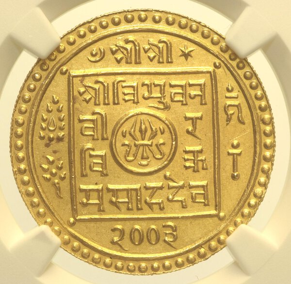 NEPAL Tribhuvana Bir Bikram. Mohar, VS 2003 (AD 1946) Fr-27; KM-702 AU Oro Gold In slab NGC MS 62 MS 62