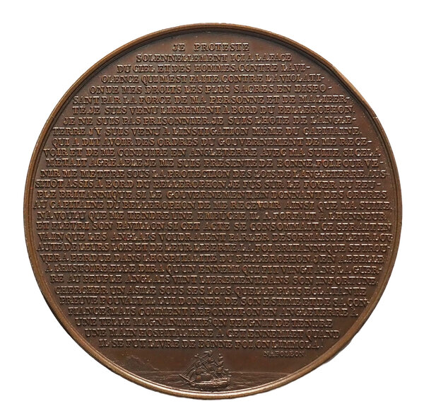 Italia, Napoleone I, Protesta di Napoleone contro la sua prigionia, 1815, Ae, gr. 72,47, mm 51,5, R, Bramsen 1694, Opus: Rogat. SPL