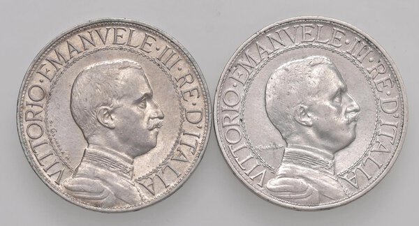 Vittorio Emanuele III (1900-1946) 2 Lire 1908 e 1912 - AG Lotto di due monete come da foto. Da esaminare BB