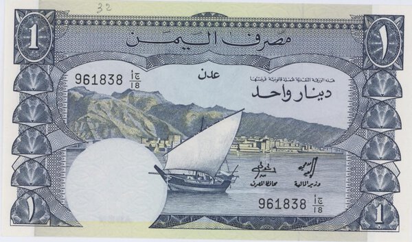 YEMEN DEMOCRATIC REPUBLIC 1 Dinar 1984 pick#07 numero a matita fds-