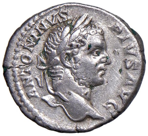 Caracalla (211-217) Denario - Testa laureata a d. - R/ Concordia seduta a s., con patera e due cornucopie - RIC 111 AG (g 3,27) Macchie verdi BB