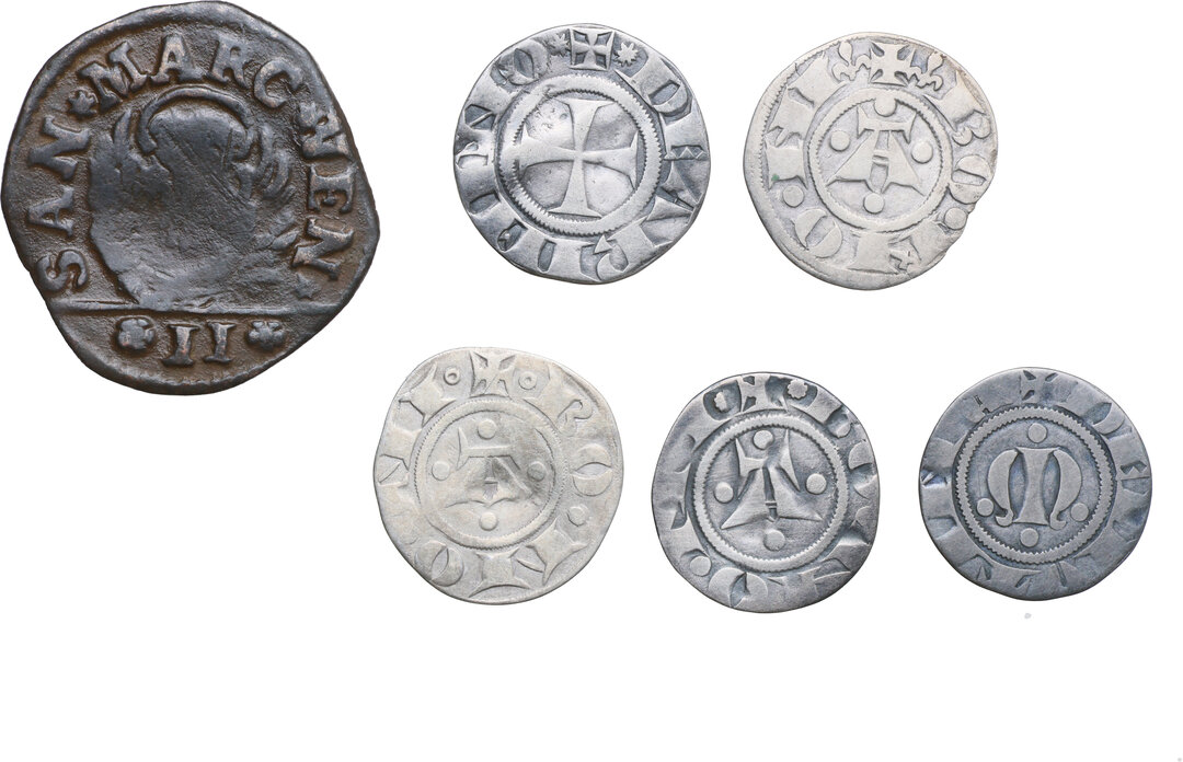 World Coins: Italy. Lot of six (6) unclassified AR (5) and AE (1) denominations.