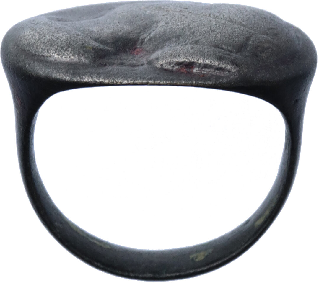 Silver finger-ring with large oval bezel with a relief portrait. A female bust, perhaps Berenike II or Arsinoe II, to left, draped and hair waved and fastened in a chignon at back of head.
