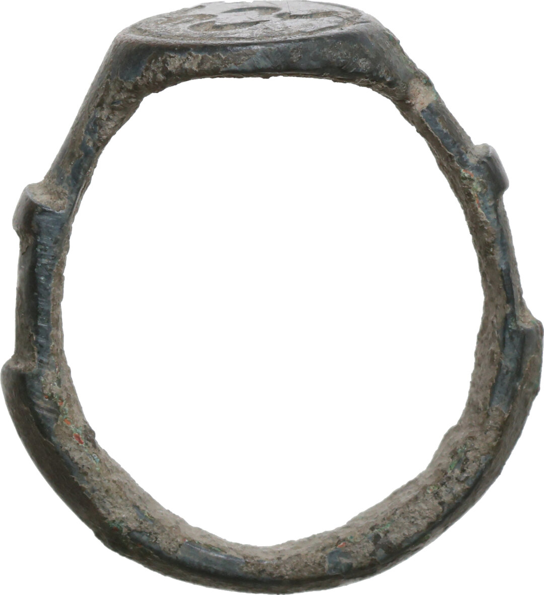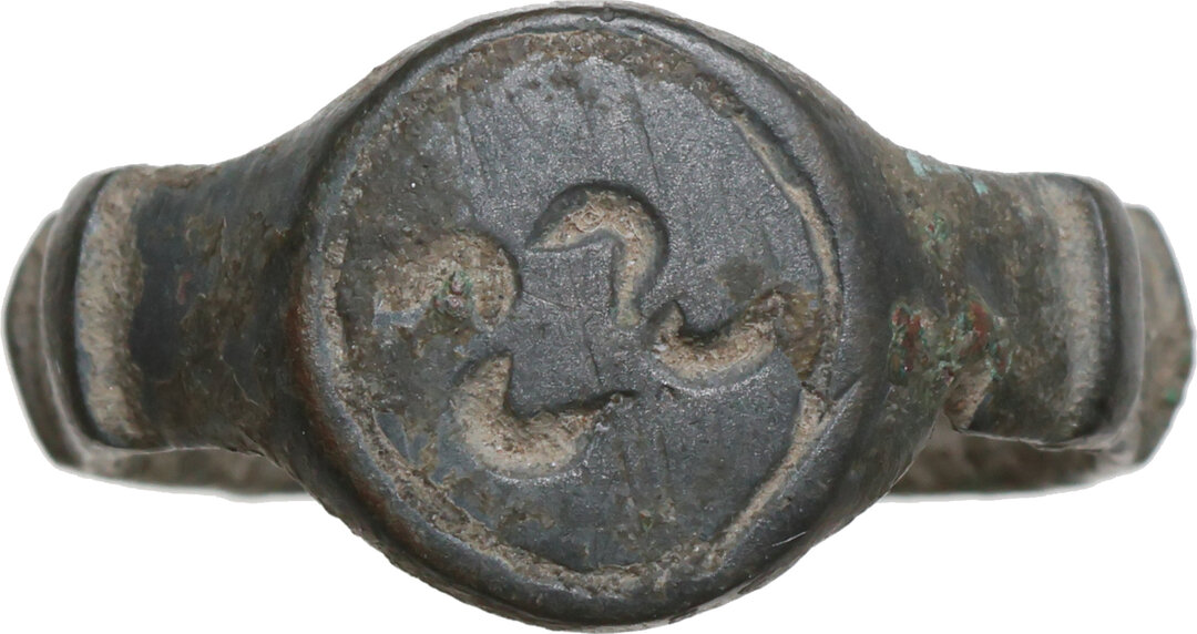 Bronze ring with a stylized decoration engraved on bezel.
