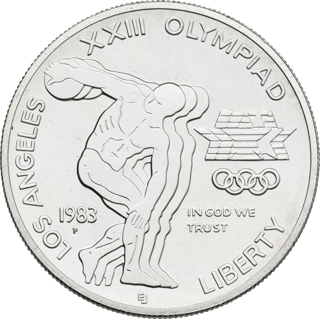 USA. AR Dollar 1983 P, Philadelphia mint. XXIII Olympiad in Los Angeles. KM 209. 26.7 g. 38.5 mm. UNC.