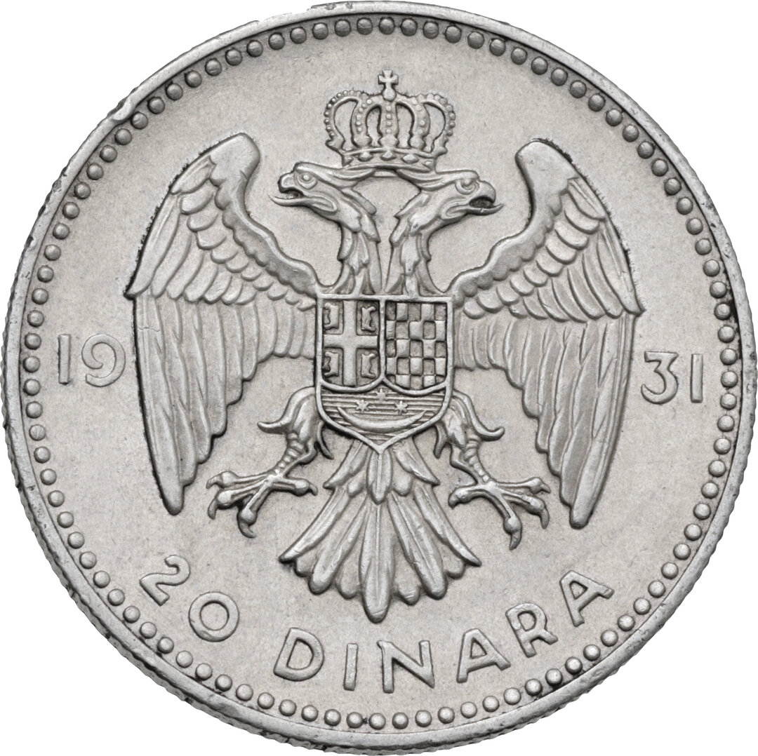 Yugoslavia. Alexander I (1929-1934). AR 20 Dinara 1931. KM 11. 13.98 g. 31 mm. Good EF/About FDC.