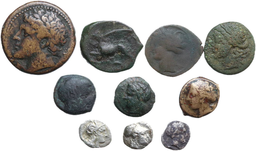 Greek Italy and Sicily. Lot of ten (10) unclassified AR and AE coins.