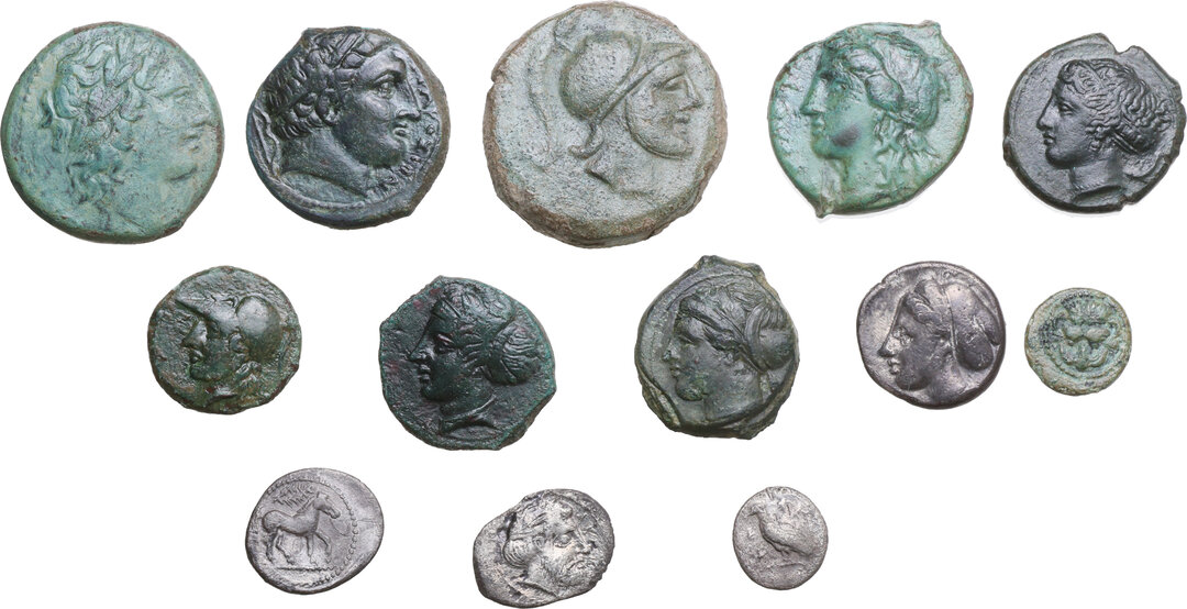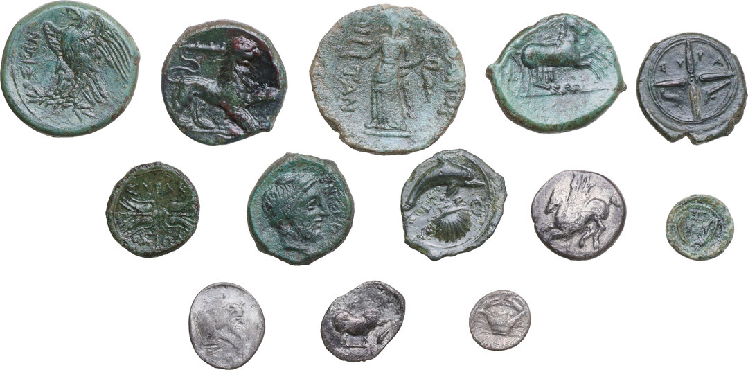 Greek Italy and Sicily. Lot of thirteen (13) unclassified AE (9) and AR (4) denominations.