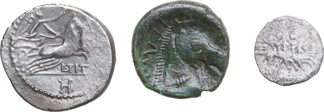 The Roman Republic. Lot of three (3) unclassified AR (2) and AE (1) denominations.
