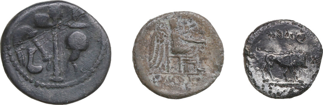 The Roman Republic. Lot of three (3) unclassified AR denominations, one of which is a Fourrée.