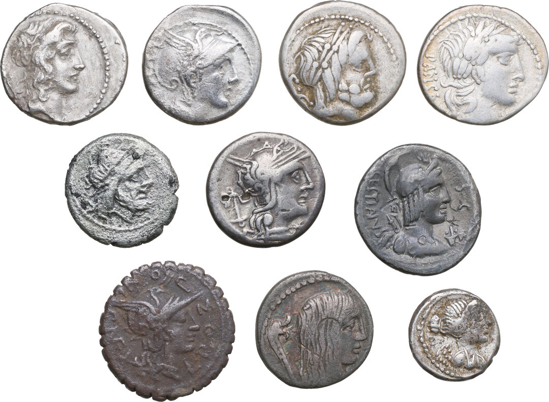 The Roman Republic. Lot of ten (10) unclassified AR denominations. Interesting study lot.