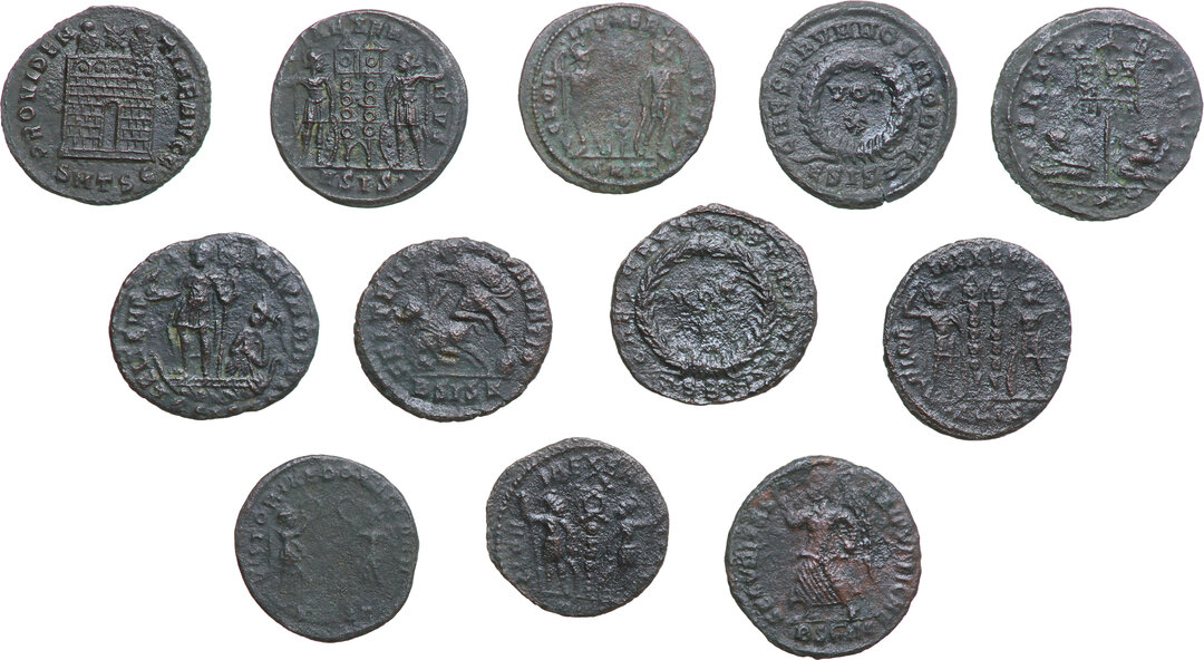 The Roman Empire. Lot of twelve (12) unclassified AE denominations of the 3rd and 4th centuries AD.