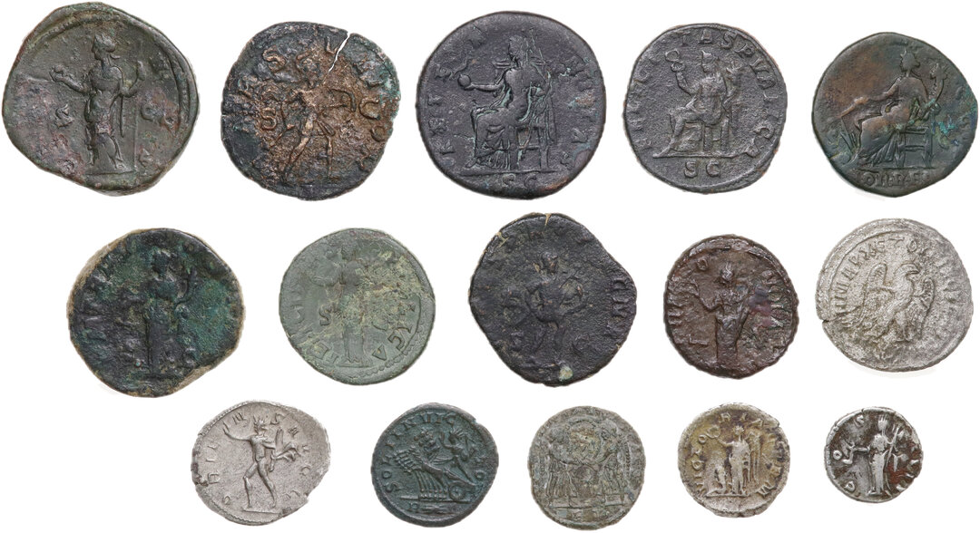 The Roman Empire. Lot of fifteen (15) unclassified AR, BI and AE denominations.