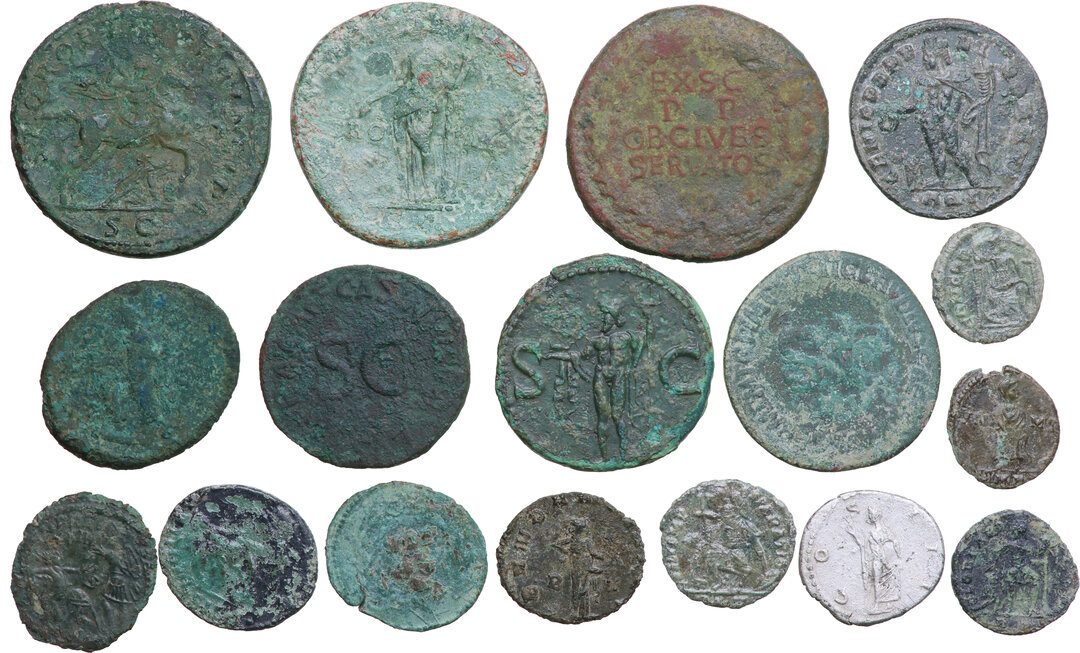 The Roman Empire. Lot of seventeen (17) unclassified AE (16) and AR (1) denominations.