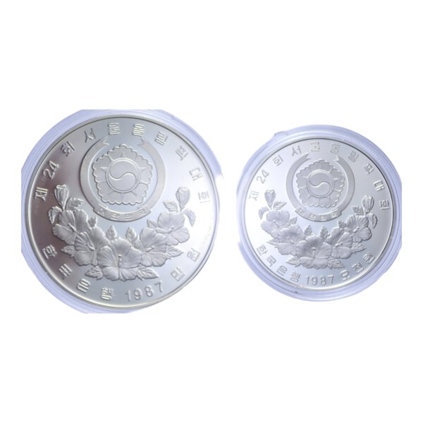 KOREA SUD 10000 + 5000 WON 1987 OLIMPIADI DI SEUL 1988 AG. 33,6+16,8 GR. IN COFANETTO PROOF
