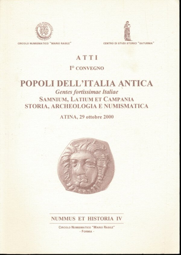 AA.VV. Nummus et Historia n. 4. Atti 1° convegno Popoli dell'Italia antica Samnium, Latium, Campania. Storia, Archeologia e Numismatica. Circolo Numismatico "Rasile Mario", 2000, pp. 78, cenni storici, foto in b/n, condizioni ottime.