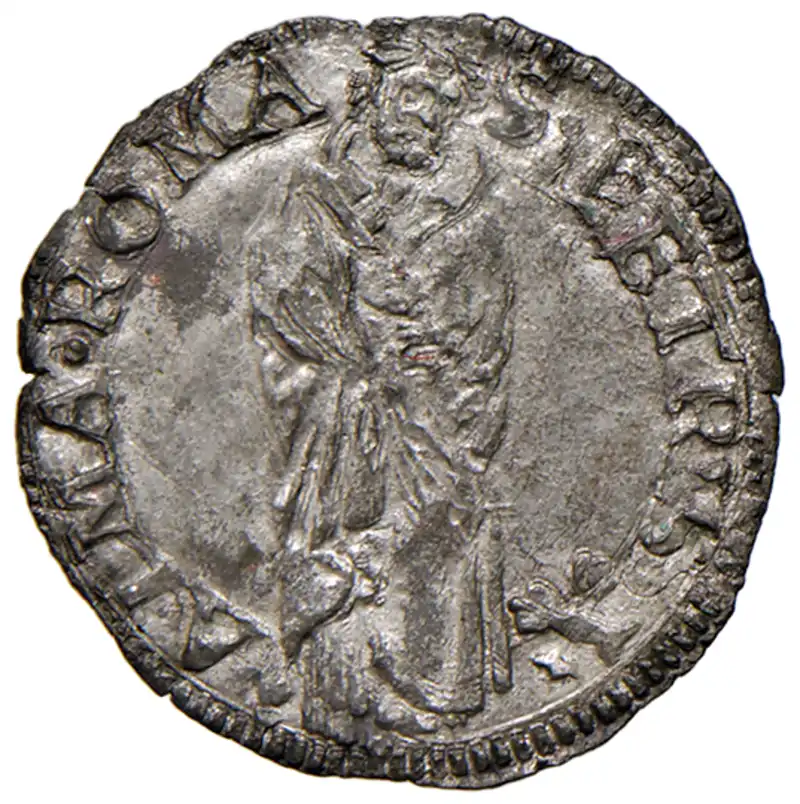 Clemente VII (1523-1534). Roma. Quattrino (segno Giacomo Balducci) MI gr. 0,73. Muntoni 72. Berman 855. MIR 815/1. Raffinato conio di Benvenuto Cellini. Molto raro. Piena argentatura d’epoca, q.SPL